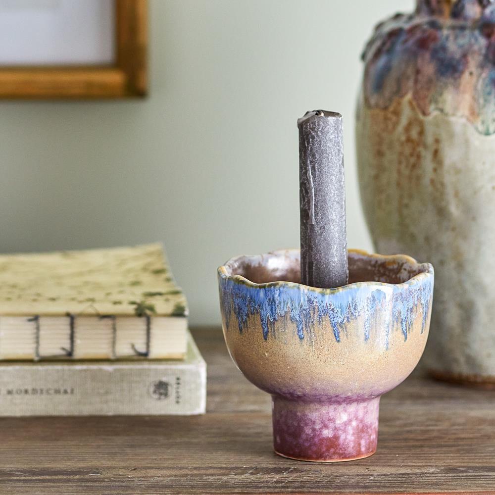 Bloomingville Cloe Kerzenhalter bunt Steingut blau rosa 10 cm
