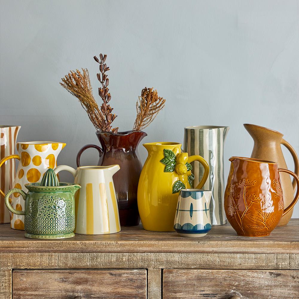Mit einem großzügigen Fassungsvermögen von 1,6 l eignet sich der Krug ideal für Wasser, Säfte oder Eistee. Gleichzeitig kannst du ihn auch als Vase nutzen, um einen legeren, mediterranen Look in dein Zuhause zu bringen.
