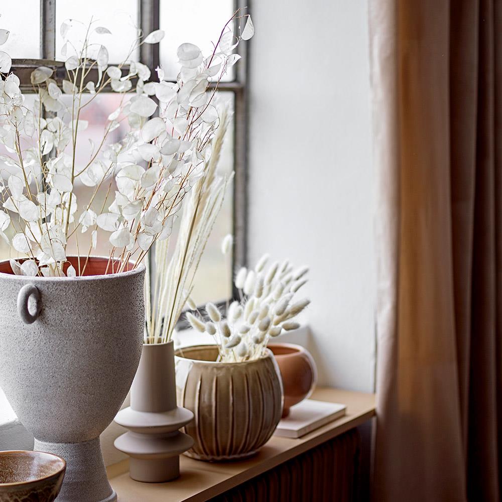 Bloomingville Isold Vase Natur Steingut 12,5 x 22 cm Dekovase Dänisches Design
