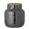 Bloomingville Janel Vase – schwarze Keramikvase mit Rattan-Detail, Ø17xH21 cm