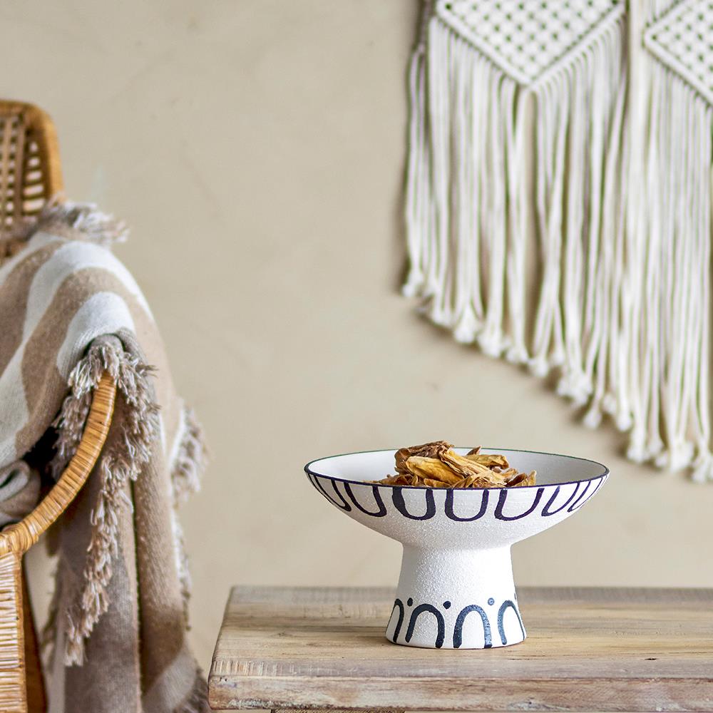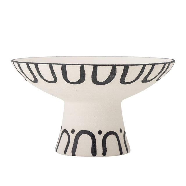 Die Mayotte Sockelschale von Bloomingville vereint skulpturales Design mit handwerklicher Individualität. Die matte Glasur bildet die perfekte Bühne für das kontrastreiche, handgemalte schwarz-weiße Muster, sodass jede Schale zum Unikat wird. Das minimalistische Sockeldesign verleiht der Schale Präsenz und sorgt dafür, dass Inhalt und Form gleichermaßen zur Geltung kommen.