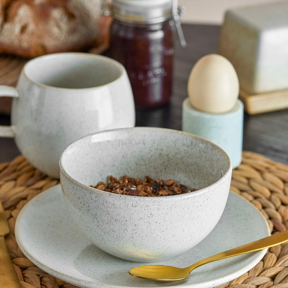 • Hochwertiger Steingutteller mit weißer Sprenkelglasur