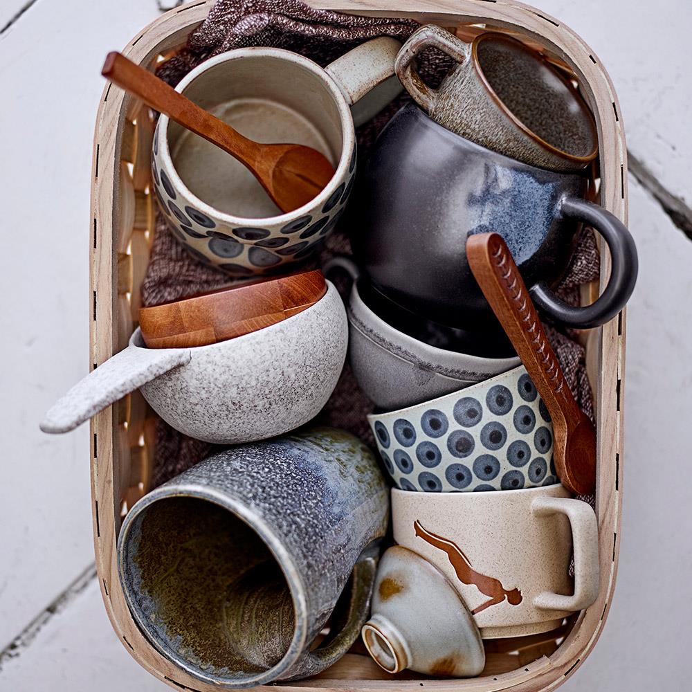 Bloomingville Harlow Becher – 2er Set aus Steingut in Braun, stapelbar & alltagstauglich