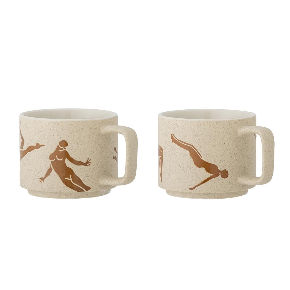 Bloomingville Harlow Becher, Braun, Steingut, 250 ml, 2er Set, stapelbar, spülmaschinengeeignet