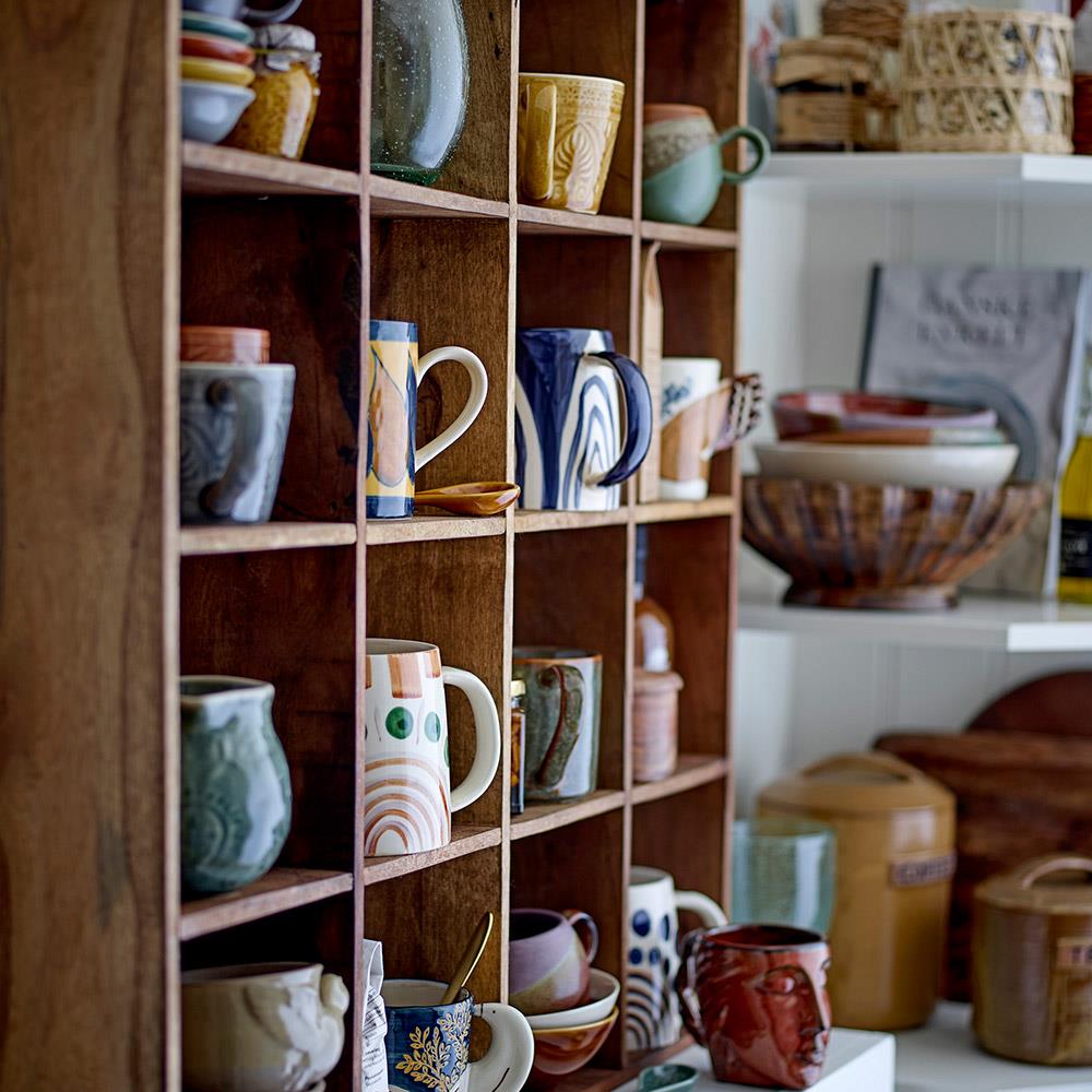 Die Heikki Tasse von Bloomingville ist ein liebevoll gestalteter Becher aus Steingut, der mit einem handbemalten Muster in warmen Brauntönen begeistert. Jeder Pinselstrich ist individuell gesetzt und verleiht dem Becher eine persönliche Note – so wird jedes Stück zum Unikat. Der praktische Henkel sorgt für angenehmen Halt und macht die Tasse ideal für deinen morgendlichen Kaffee, Tee oder heiße Schokolade.