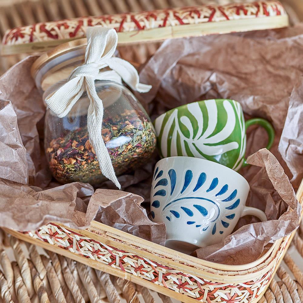 - Handgefertigte Steingut-Tasse mit geprägtem Muster