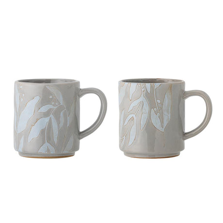 Bloomingville Aurora Tassen 2er Set, Grau, Steingut, stapelbar, 350 ml, spülmaschinengeeignet