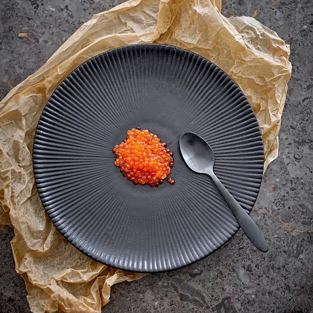 Die matte Oberfläche und die dunkle Farbgebung verleihen dem Teller eine elegante und zeitlose Ausstrahlung. Die hochwertige Verarbeitung macht ihn spülmaschinengeeignet und lebensmittelecht. Aufgrund der metallischen Komponenten in der Glasur ist der Teller jedoch nicht für Mikrowelle oder Backofen geeignet – ein Hinweis, der die besondere Materialqualität unterstreicht und für Langlebigkeit sorgt.
