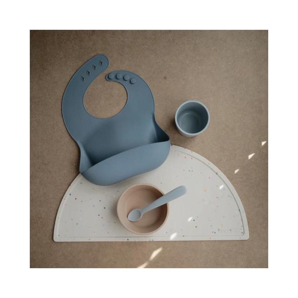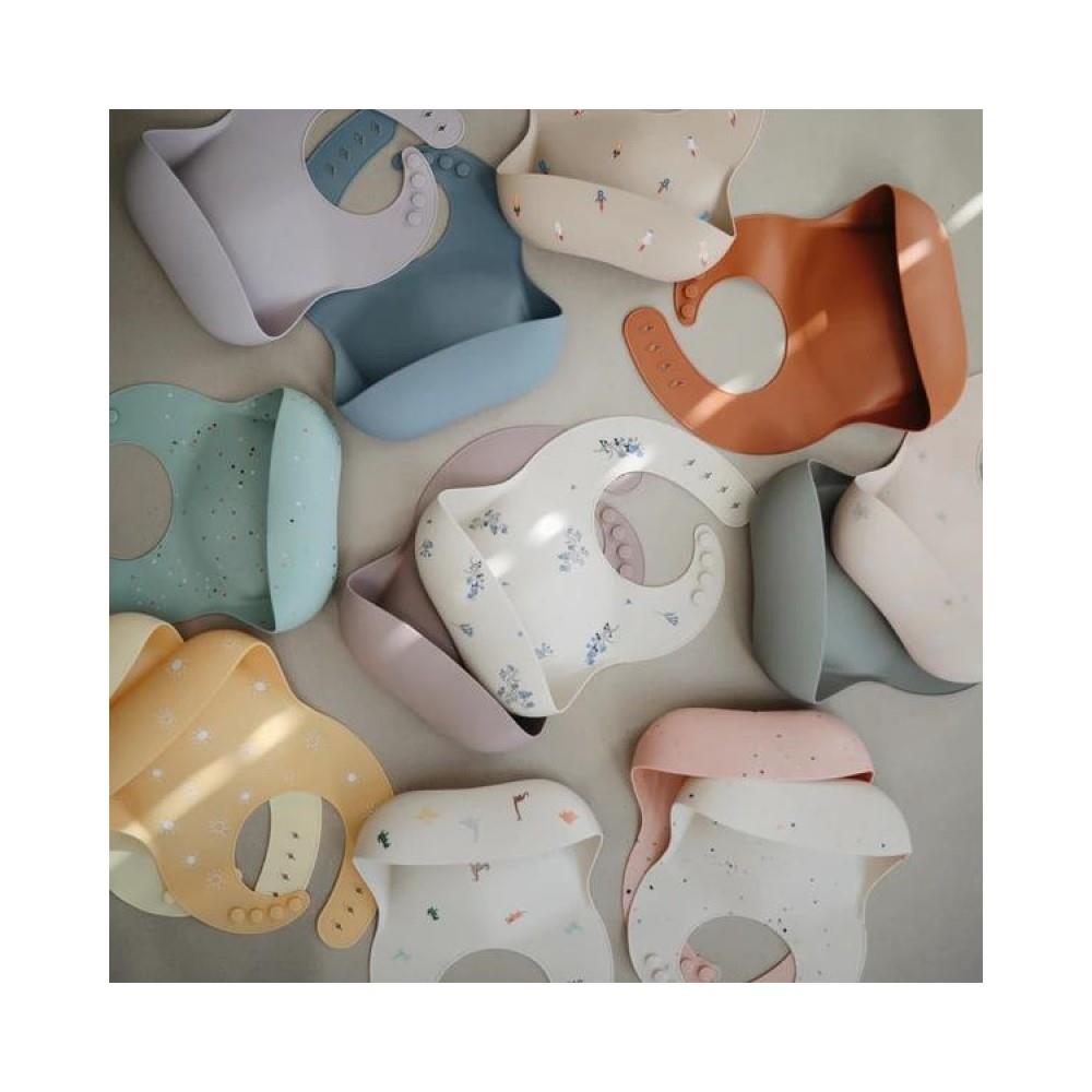 Mit dem hochwertigen Silikon-Lätzchen von Mushie bleibt dein Baby beim Essen sauber und fühlt sich rundum wohl. Die integrierte Auffangschale fängt herunterfallendes Essen zuverlässig auf und schützt Kleidung sowie Umgebung vor Flecken und Krümeln – ideal für die ersten selbstständigen Mahlzeiten.