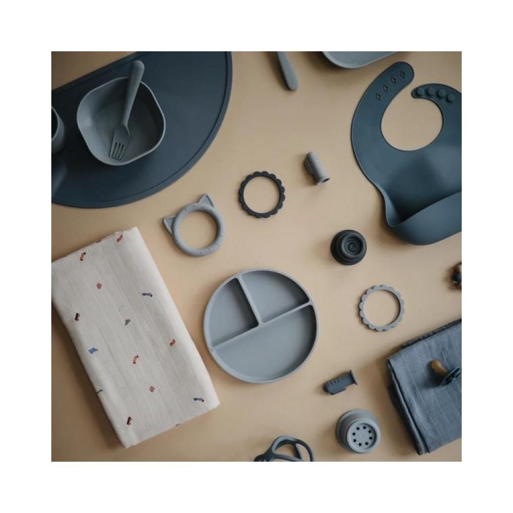 Mushie Silikon-Lätzchen, Tradewinds, mit Auffangschale, BPA-frei