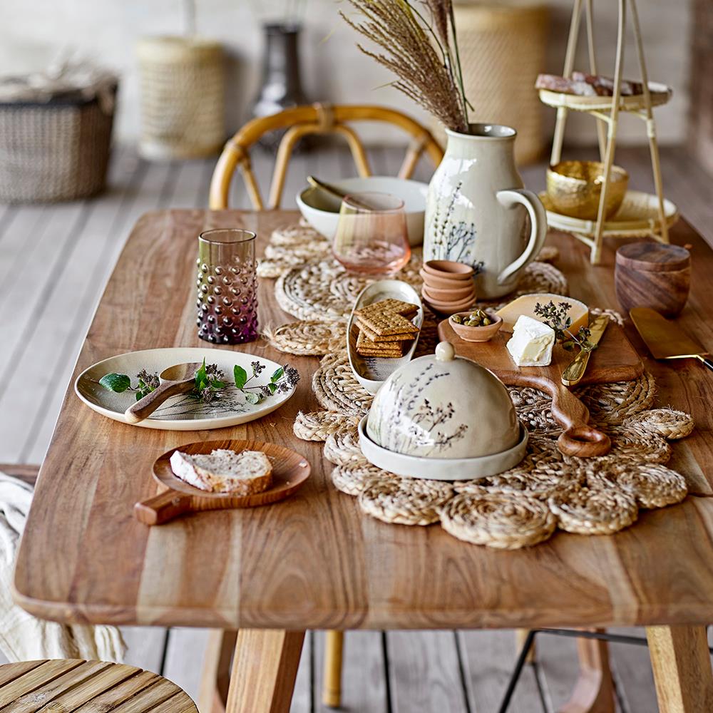 Bloomingville Bea Servierplatte, Natur, 35,5x8cm, Steingut, mit Blumenmotiv, dänisches Design