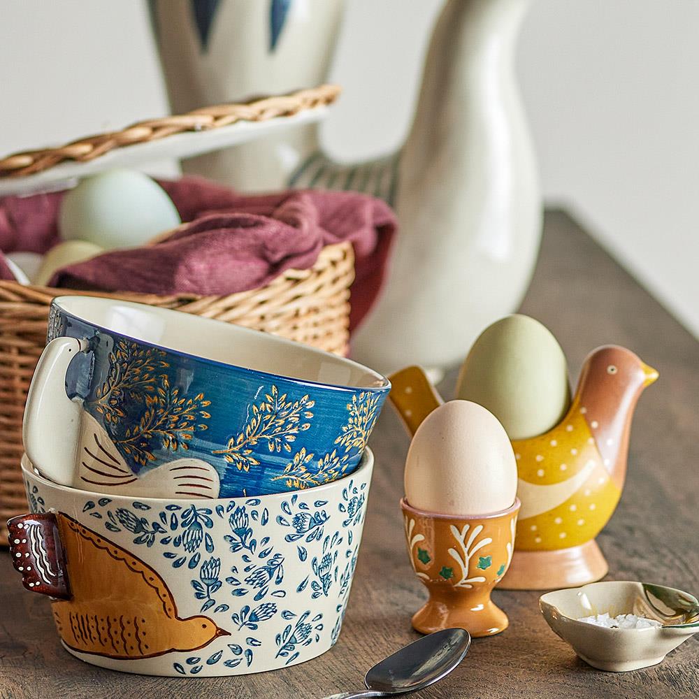 Bloomingville Hezha Schale Blau – Handbemalte Steingutschale mit Vogelmotiv, 460 ml