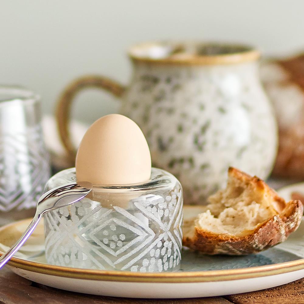 Bloomingville Kiyomi Eierbecher, Klar, Recyceltes Glas – Handgraviertes Muster