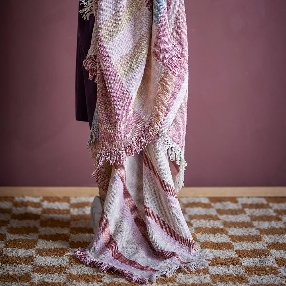 Bloomingville Lane Decke – Bunt, aus recycelter Baumwolle, 160x130 cm