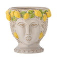 Der Limone Blumentopf ist wie ein kleines Kunstwerk gestaltet: ein Frauenkopf mit einer Krone aus Zitronen und Blättern in warmen Gelb- und Grüntönen. Die handbemalten Details verleihen ihm einen mediterranen Charakter und machen ihn zum Blickfang auf Sideboard, Fensterbank oder Esstisch.