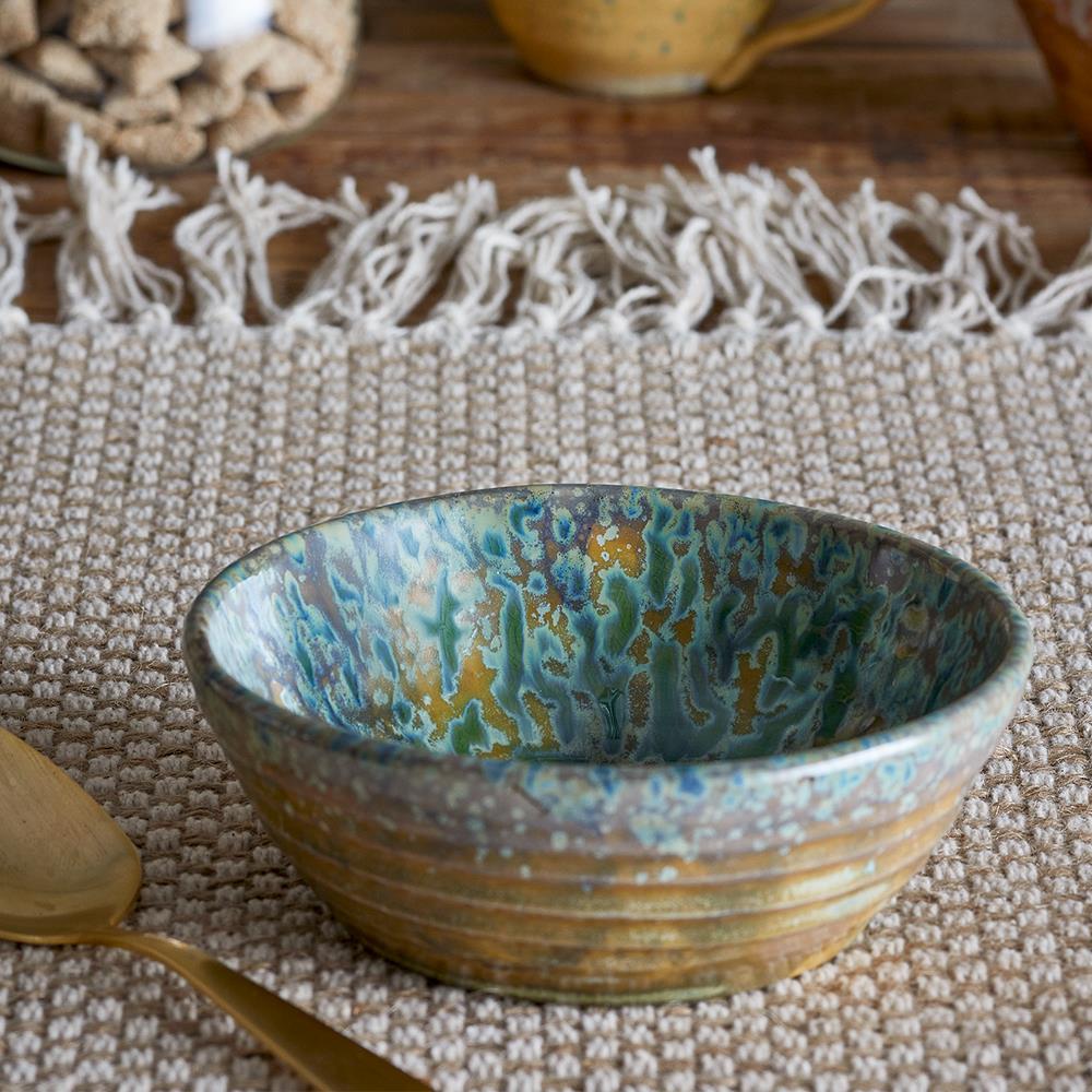 - Handgefertigte Steingutschale mit reaktiver Glasur