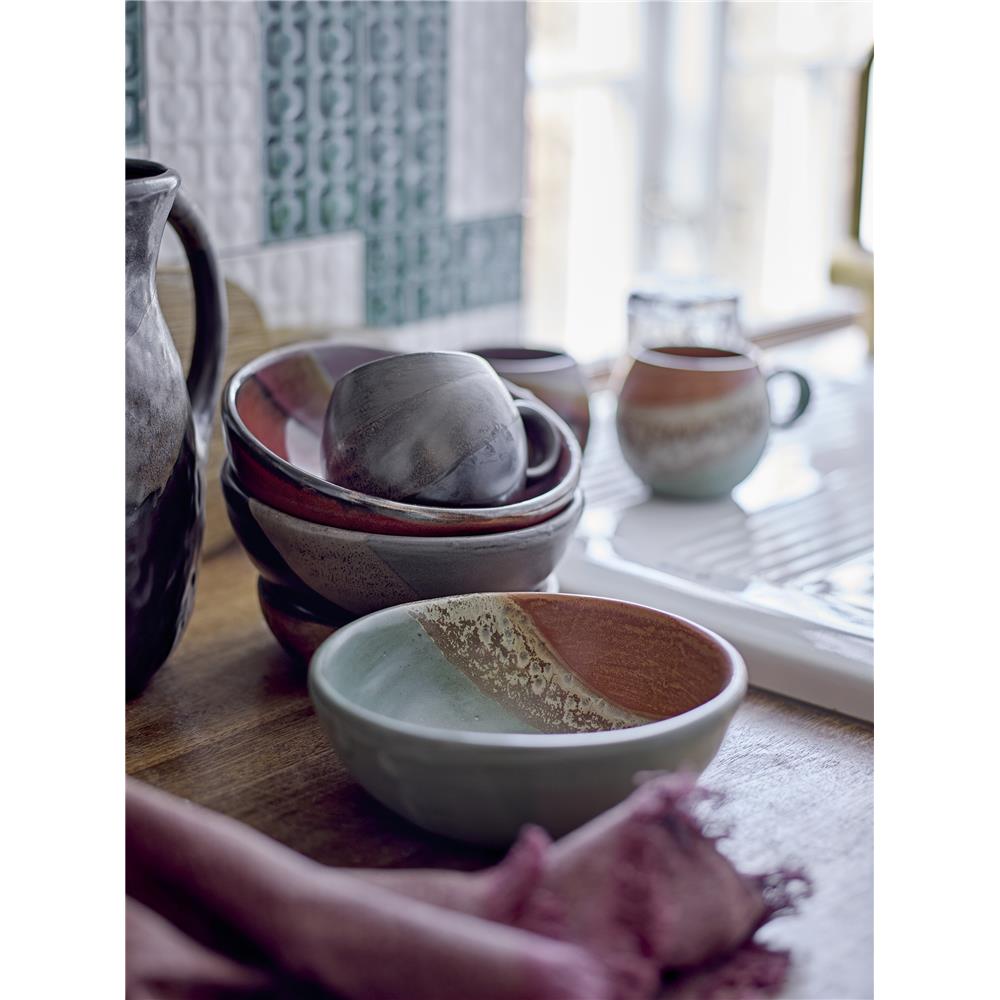 Die Paula Schale von Bloomingville, in eleganten lila und rötlichen Nuancen, ist ein künstlerisches Highlight für Ihre Tischdekoration. Jede handbemalte Steingutschale ist ein Unikat, da individuelle Pinselstriche einzigartige Variationen im Design schaffen. Mit einem Fassungsvermögen von 572 ml ist die Schale vielseitig einsetzbar und spülmaschinen-, mikrowellen- sowie backofenfest. Maße: D16xH6 cm. Handgemaltes lila Muster für künstlerischen Ausdruck