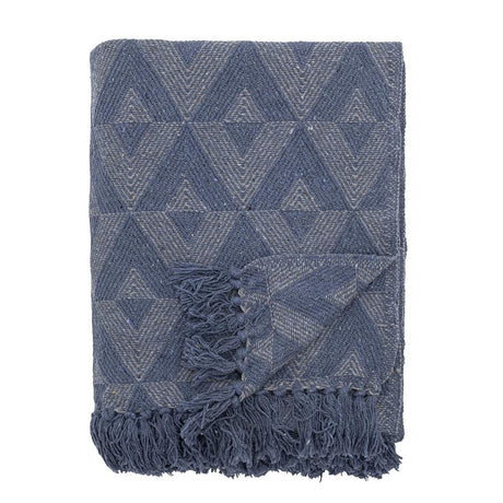 Bloomingville Udine Decke Blau Recycelte Baumwolle L160xW130 cm – geometrische Decke
