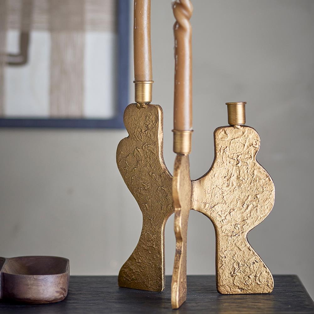 Der Lux Kerzenhalter von Bloomingville ist ein ausdrucksstarkes Deko-Objekt, das mit seiner goldfarbenen Oberfläche und dem skulpturalen Design sofort ins Auge fällt. Gefertigt aus robustem Metall (Eisen), bietet er Platz für drei Stabkerzen mit einem Durchmesser von 2,2 cm. Die raue, strukturierte Oberfläche verleiht dem Kerzenhalter eine warme, handwerkliche Ausstrahlung, die perfekt mit modernen und klassischen Einrichtungsstilen harmoniert.