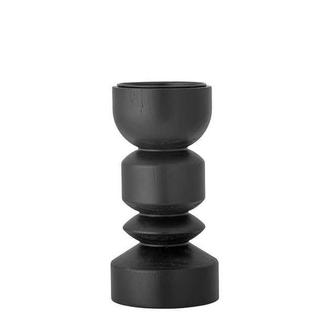 Bloomingville Bowen Kerzenhalter, Schwarz, Kiefernholz, 22 cm, skulptural, modern, dekorativ