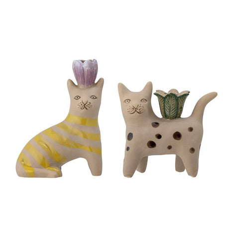 Bloomingville Mamie Kerzenhalter 2er Set – handbemaltes Steingut, warmes Braun
