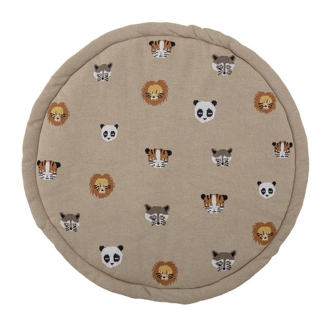 Bloomingville MINI Miko Spielmatte Zootiere 100cm rund Braun Baumwolle Spielteppich dänisches Design