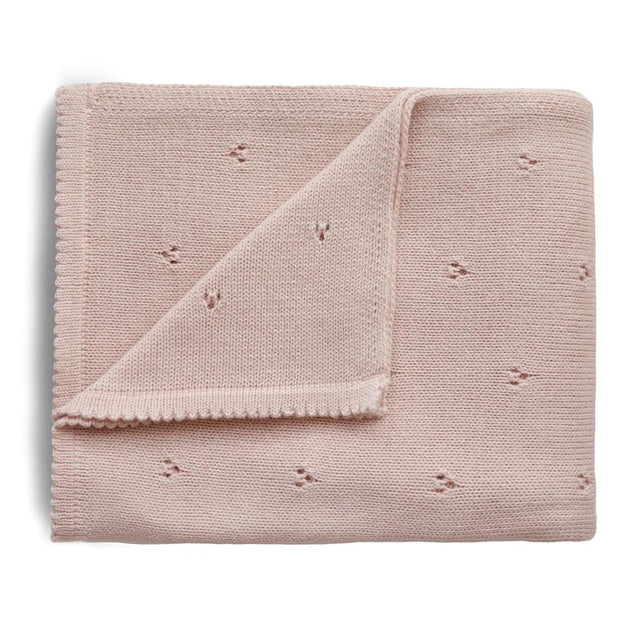 Mushie Gestrickte Babydecke Pointelle, Blush, aus 100% Bio-Baumwolle