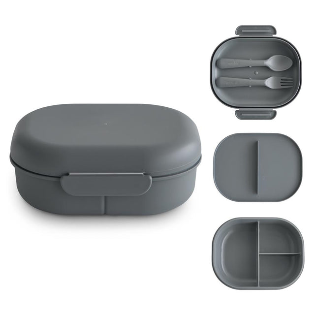 Mushie Lunchbox, Smoke, Brotdose mit Löffel und Gabel, BPA-frei