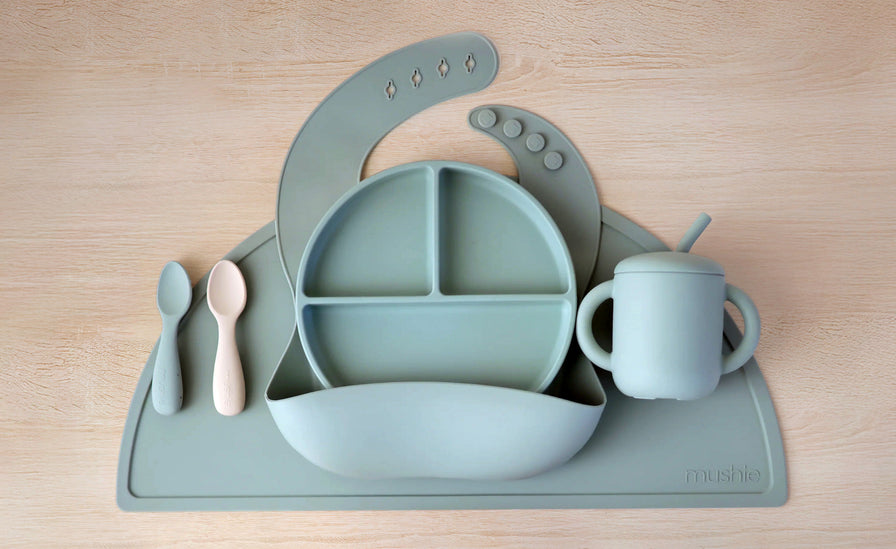 Lätzchen, Saugteller, Löffel, Trinkbecher und Platzdeckchen sind durchdacht designt, damit nichts verschüttet wird, während deine Kleinen lernen, selbstständig zu essen.