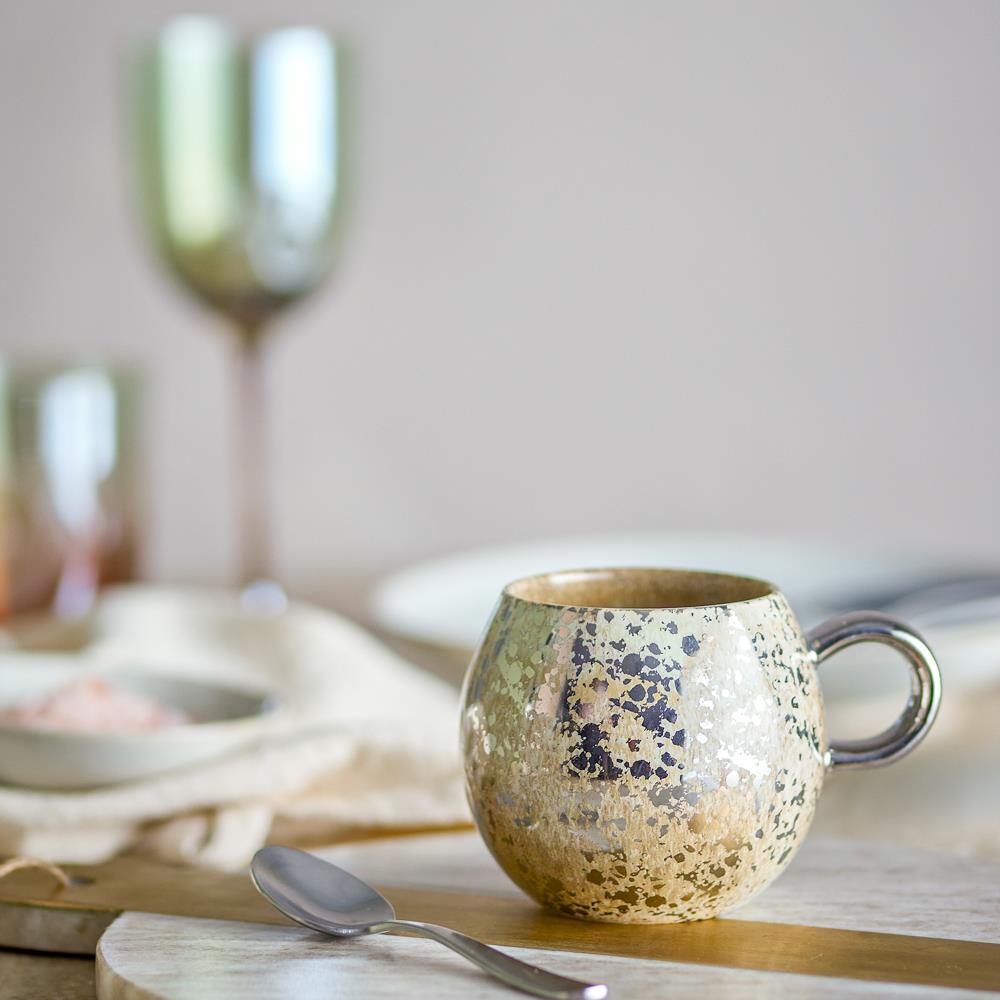 Bloomingville Paula Tasse Grün Steingut D9xH8 cm – grün mit Metallic-Effekt