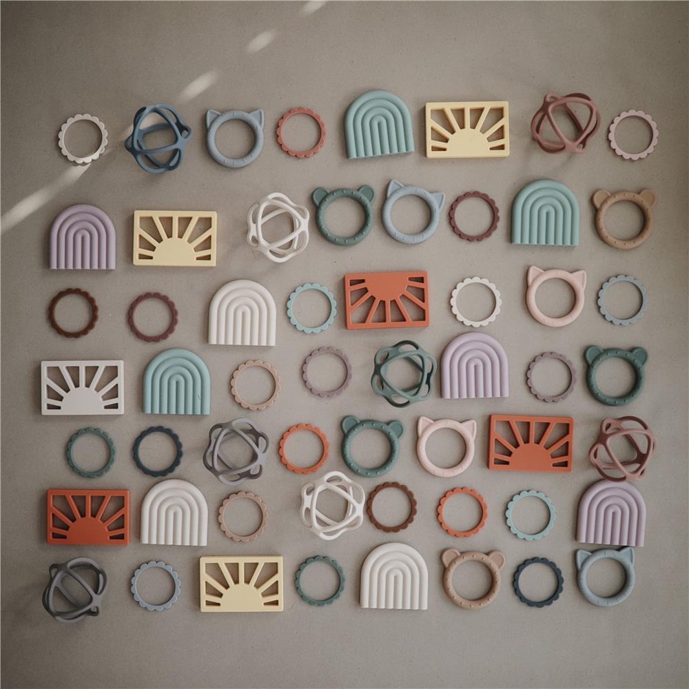 Mit den Beißringen können Sie das gereizte Zahnfleisch Ihres Babys beruhigen. Die Beißringe bestehen zu 100 % aus ungiftigem, lebensmittelechtem Silikon und sind so konzipiert, dass sie von kleinen Fingern leicht gegriffen werden können, so dass sie für Ihr Baby sicher sind. Ihr geometrisches Design und die raffinierten Farben machen sie zu einer stilvollen Ergänzung für Ihr Zuhause.