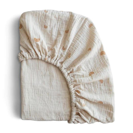 Mushie Extra weiches Musselin-Kinderbettlaken, Rainbows, 132x71cm Spannbettlaken