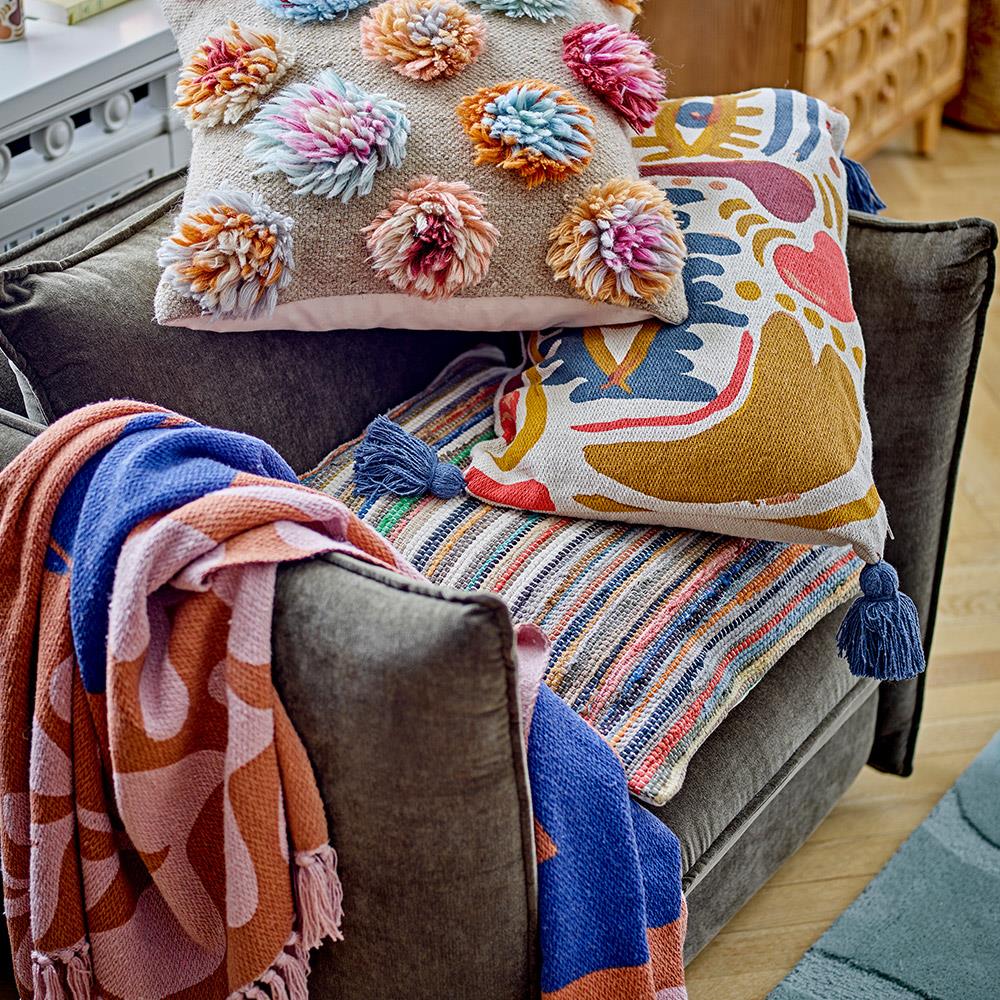 - Decke aus recycelter Baumwolle mit dekorativem Druckmotiv