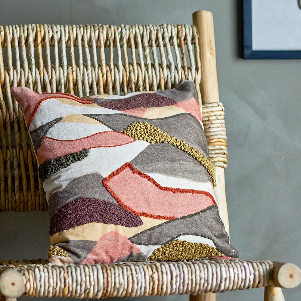- Gewebtes Kissen mit Druck, Stickerei & getufteten Details