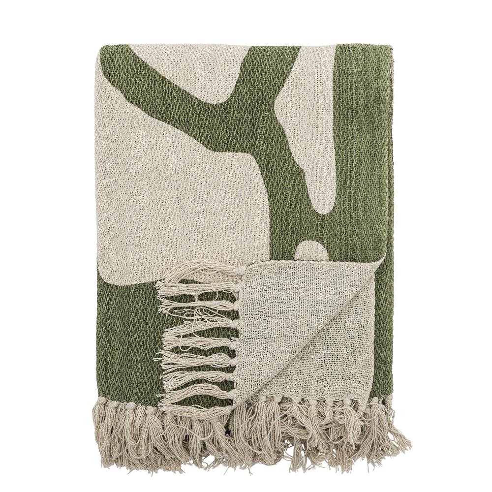 Bloomingville Dalmine Decke, Grün, recycelte Baumwolle, 160x130 cm, mit Fransen, waschbar