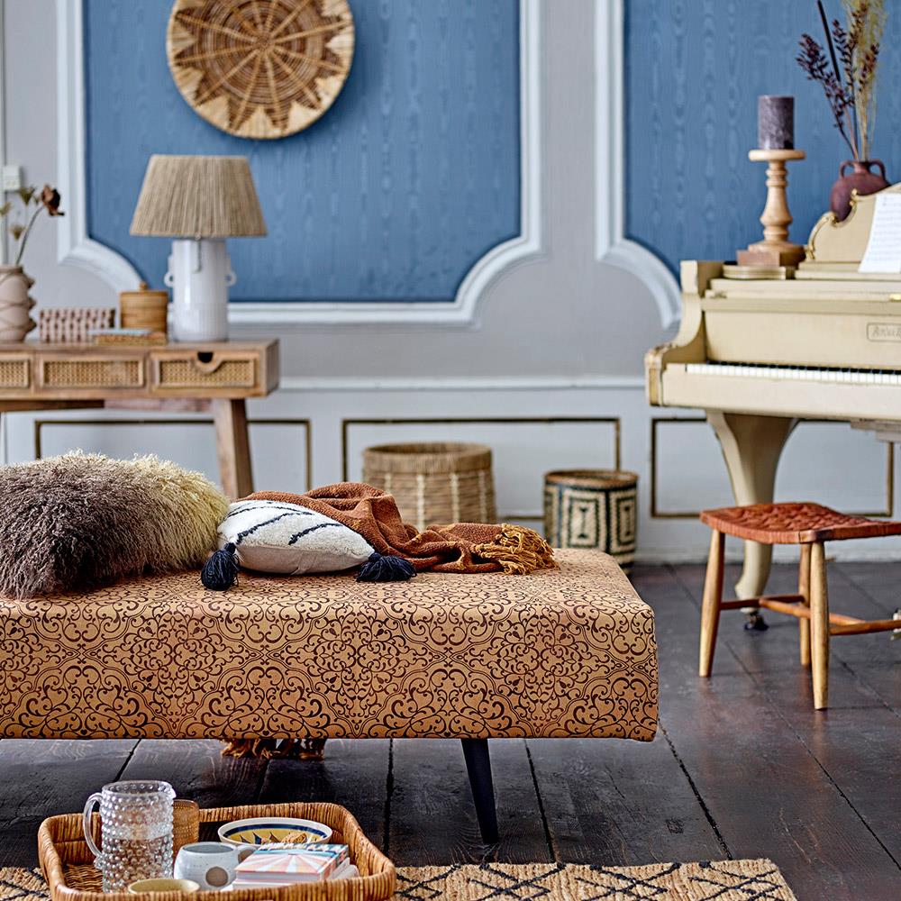 Die Ganja Decke von Bloomingville ist ein dekoratives Plaid, das durch seine warme Farbgebung und das aufgedruckte Muster sofort für Wohlfühlatmosphäre sorgt. Gefertigt aus recycelter Baumwolle und weiteren weichen Fasern, vereint sie Nachhaltigkeit mit Komfort. Die braunen Töne wirken beruhigend und passen sich harmonisch in verschiedenste Wohnstile ein – ideal für kalte Wintertage mit einer heißen Tasse Kakao oder laue Sommerabende auf der Terrasse.