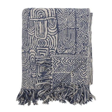 Bloomingville Bresso Decke, Blau, recycelte Baumwolle, 160x130 cm, mit Fransen, waschbar
