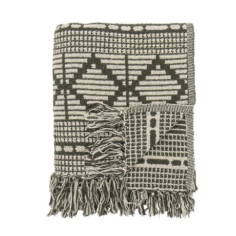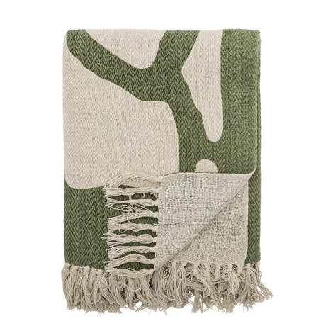 Bloomingville Gutte Decke, Grün, 130x160 cm, recycelte Baumwolle, mit Fransen