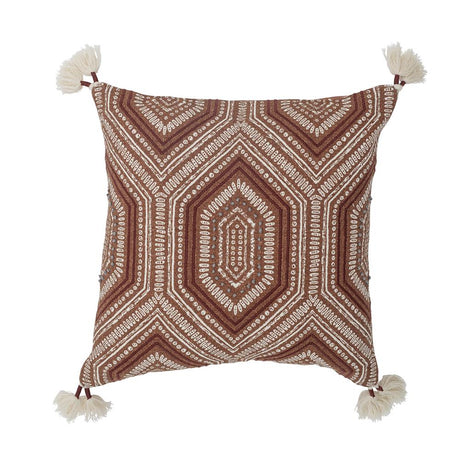 Bloomingville Mahado Kissen, Orange, Baumwolle – mit Stickmuster & Fransen, 45x45 cm