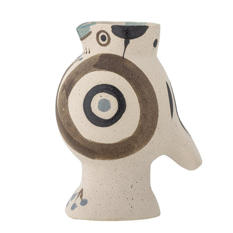 Bloomingville Mahrab Vase, Natur, Steingut – handdekorierte Vogelvase mit künstlerischem Charakter