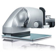 - Hochwertiger, freitragender Allesschneider aus Vollmetall, mit bruchsicherer Glasbodenplatte für die anspruchsvolle Küche