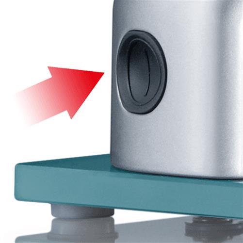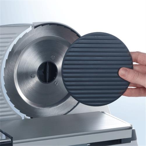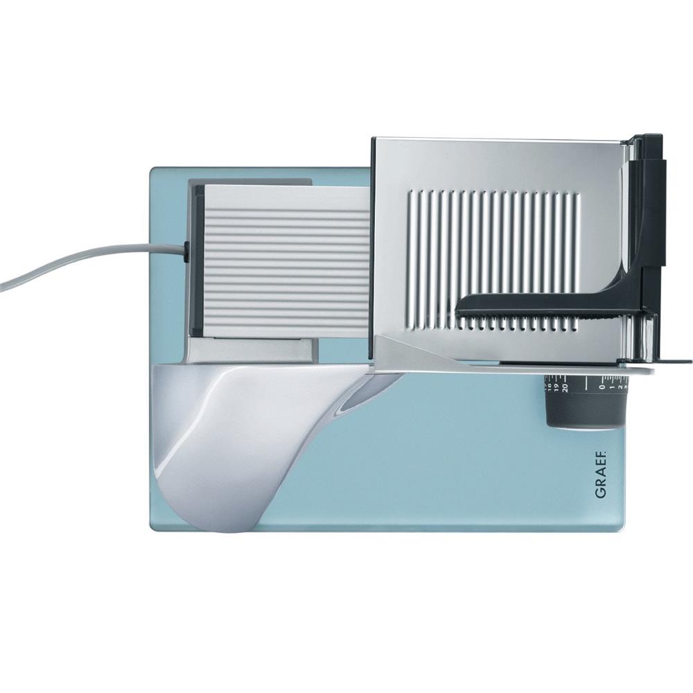 Durch die freitragende Konstruktion mit hygienischer Glasbodenplatte können Tabletts direkt unter dem Messer platziert werden. Der leichtgängige Schlitten mit Edelstahlauflage und Kindersicherung ermöglicht eine komfortable und sichere Bedienung.
