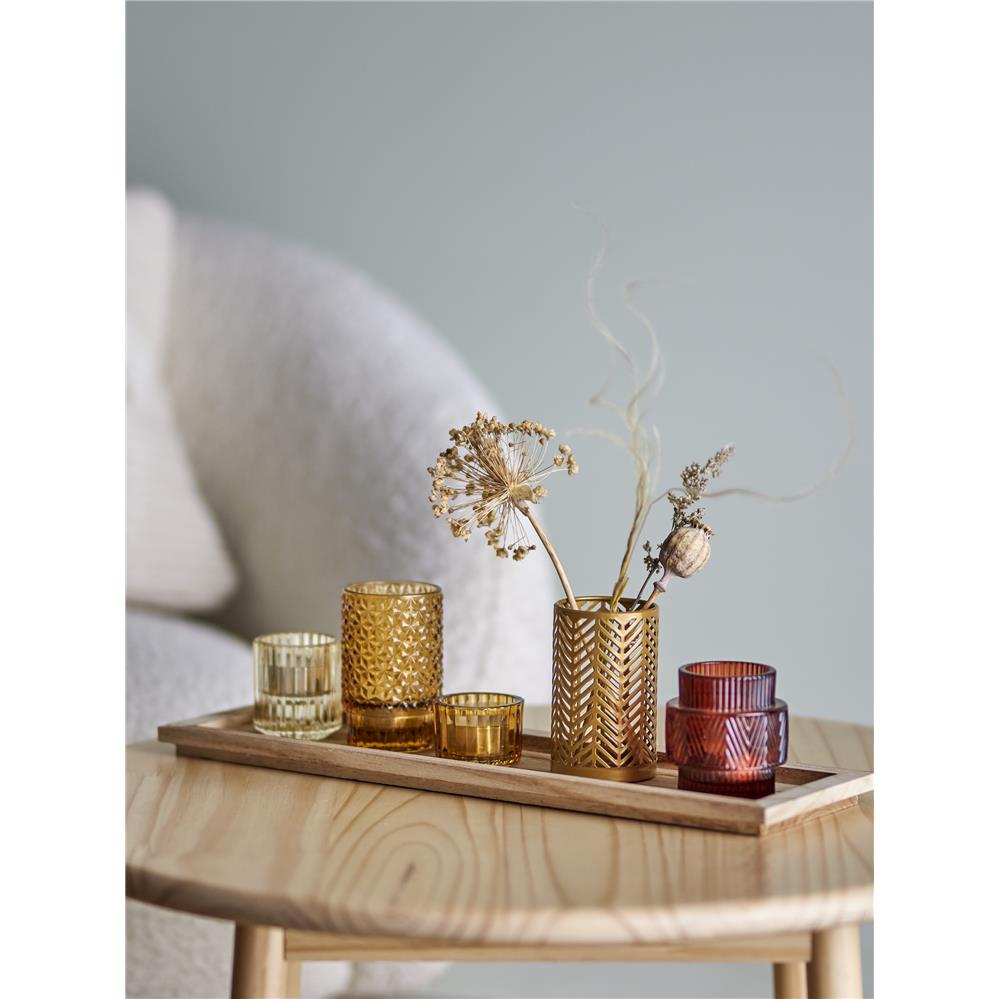 Bloomingville Sanga Tablett mit Teelichthaltern 43 x 10,5 x 12,5 cm Braun Glas Teelichter Kerzendeko