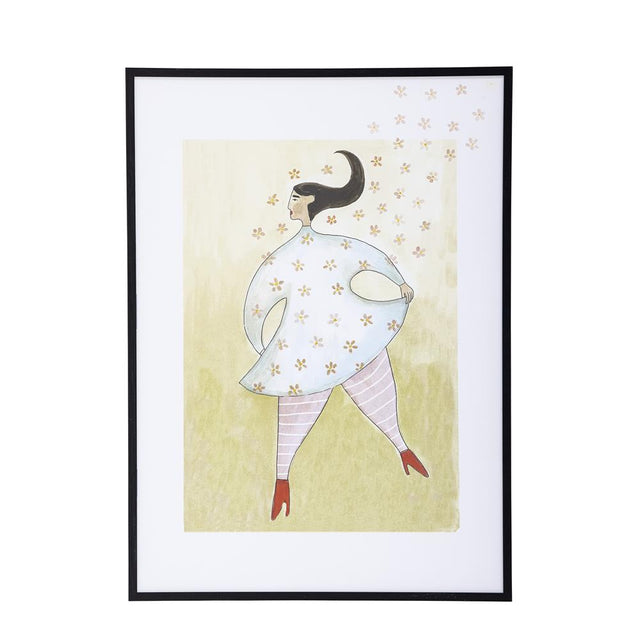 Die Ajo-Illustration mit Rahmen von Bloomingville ist ein künstlerisches Poster, illustriert von unseren eigenen Designern. Die Illustration ist in feinen Pastellfarben gehalten und stellt eine Frau dar, von deren Hemd Blumen wehen. Der Rahmen ist aus Kiefernholz in Schwarz gefertigt, das wunderschön mit den hellen Farbtönen der Illustration kontrastiert und das Motiv hervorhebt.