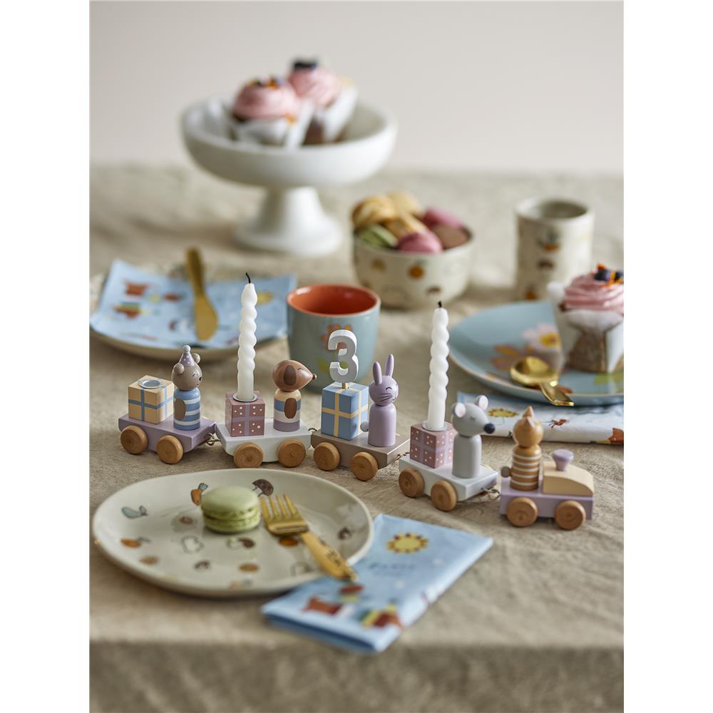 Die Junaid Geburtstagsdekoration von Bloomingville MINI verwandelt jeden Kindergeburtstag in ein liebevolles Fest voller Fantasie. Der dekorative Zug besteht aus fünf Wagen, die mit niedlichen Tieren und Geschenken in zarten Pastellfarben geschmückt sind. Mit Zahlen von 0 bis 9 lässt sich das Alter des Kindes individuell darstellen – perfekt für jedes neue Lebensjahr.