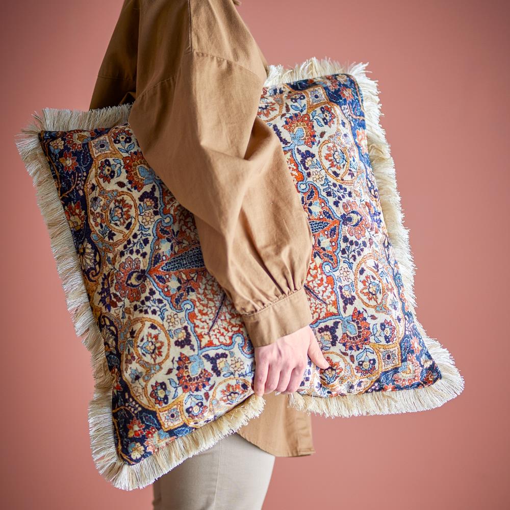 Das Asu Kissen von Creative Collection überzeugt mit seiner harmonischen Farbstimmung und einem kunstvollen, floralen Motiv. Die Oberfläche aus einer weichen Viskose‑Baumwoll‑Mischung fühlt sich angenehm glatt an und verleiht deinem Zuhause einen eleganten, warmen Charakter. Dezente Fransen entlang der Kanten runden das Design stilvoll ab und machen das Kissen zu einem geschmackvollen Blickfang auf Sofa, Sessel oder Bett.