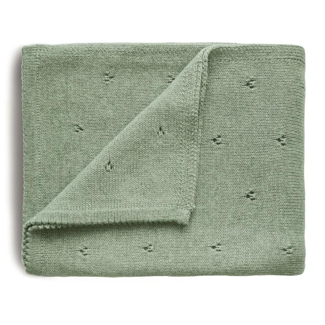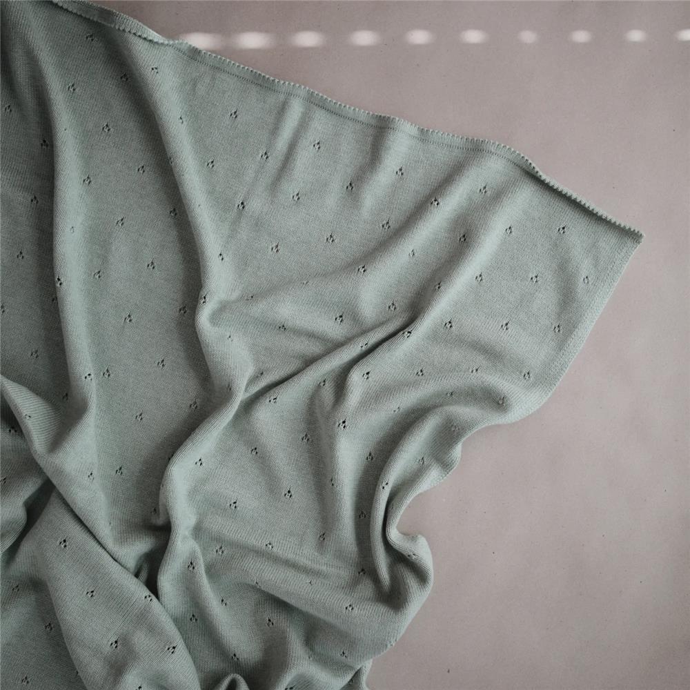 Mushie Gestrickte Babydecke Pointelle, Sage Melange, aus 100% Bio-Baumwolle