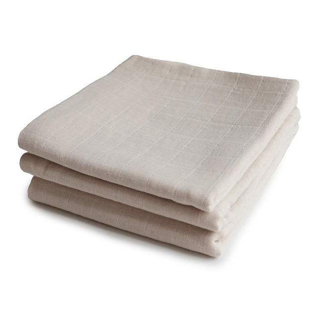 Mushie Musselin-Spucktücher 3er-Pack, Fog, Mulltücher aus 100% Bio-Baumwolle