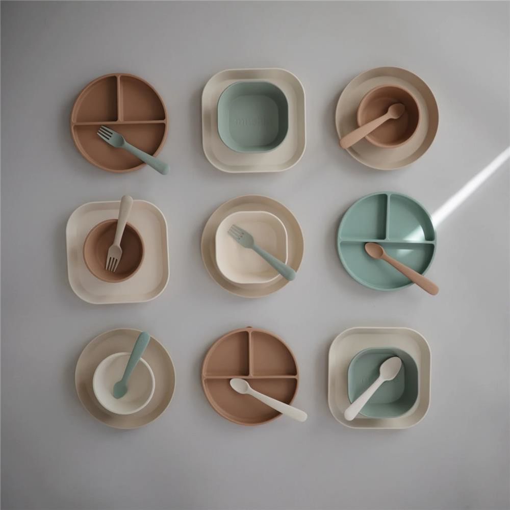 Mushie Silikon-Kinderteller, Cambridge Blue, Geteilter Teller mit Rutschfestem Saugnapf